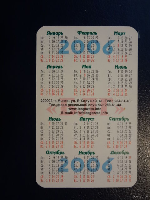 Календарик 2006 г. Белорусская Лесная газета.