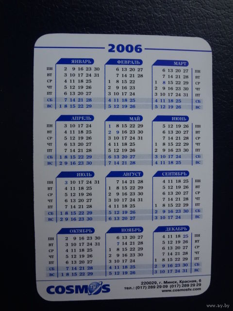 Календарик 2006 г. COSMOS. Долгожданные новости.