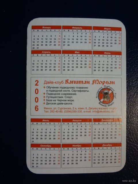 Календарик 2006 г. Дайв-клуб Капитан Морган.