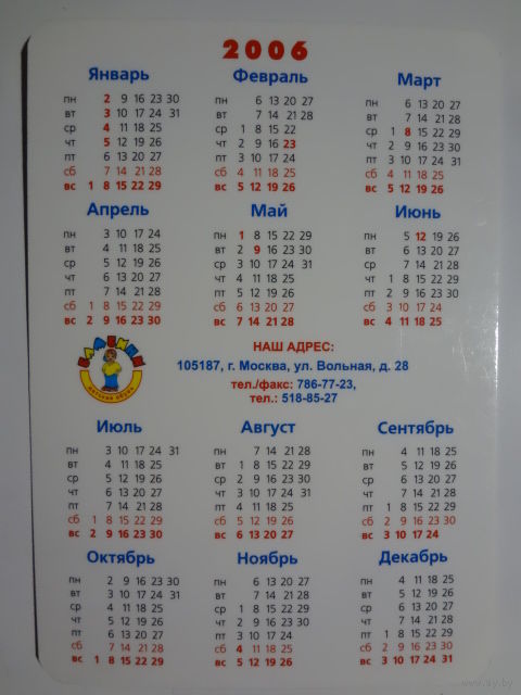 Календарик 2006 г. Детская обувь. Бамбини.