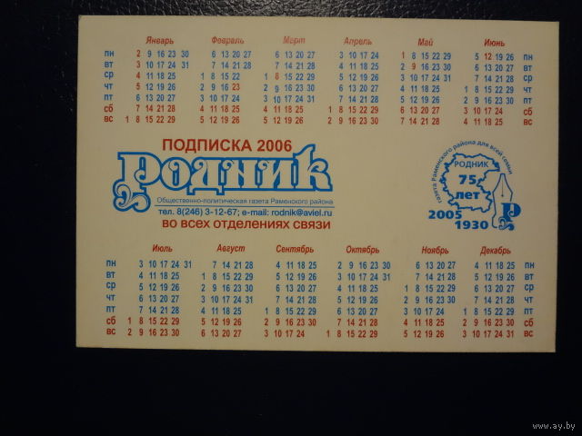 Календарик 2006 г. Газета Родник (Раменское).