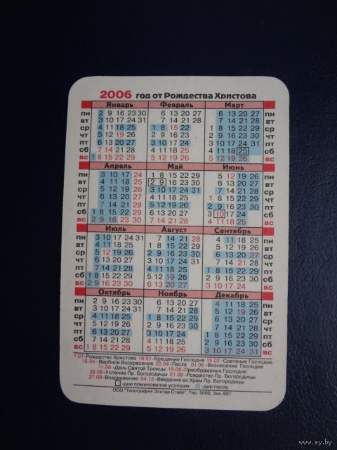 Календарик 2006 г. Икона Божией Матери Неопалимая Купина.