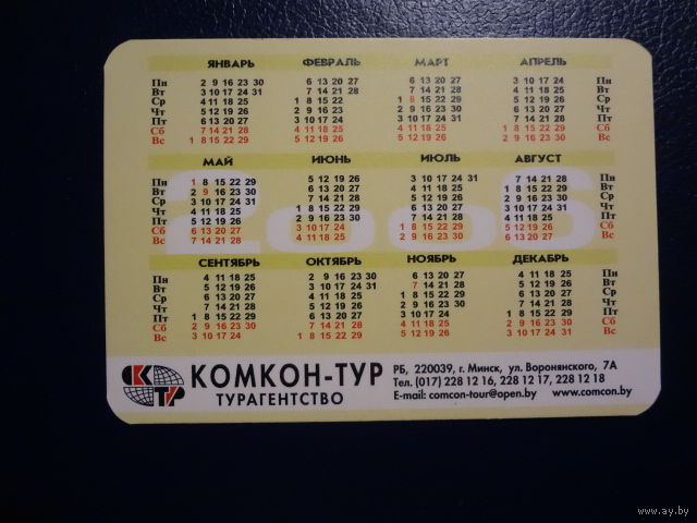 Календарик 2006 г. Комкон-тур. Турагентство.