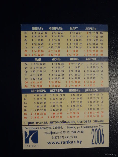 Календарик 2006 г. Лучшие брэнды Санкт-Петербурга.