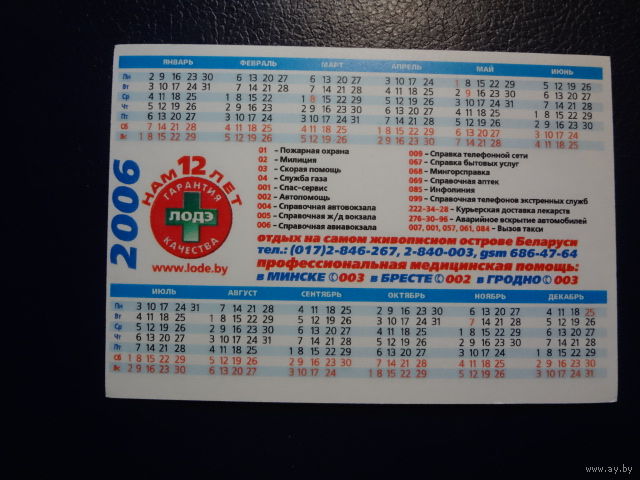 Календарик 2006 г. Пансионат на острове ЛОДЭ.