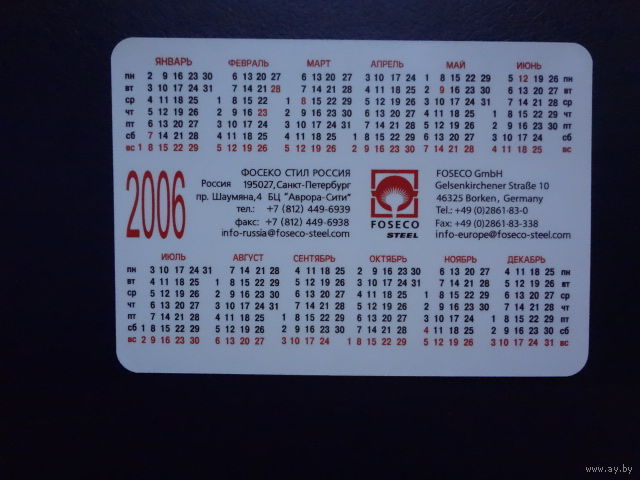 Календарик 2006 г. Первоклассный партнер в мире производства стали.