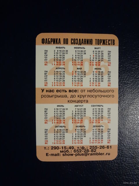 Календарик 2006 г. Программа Шоу Плюс Александра Бугаева (1).
