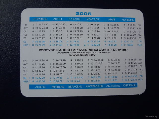 Календарик 2006 г. Сілічы. Горнолыжный центр.