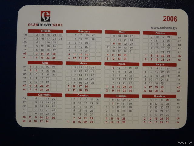Календарик 2006 г. Славнефтебанк. Вместе 10 лет.