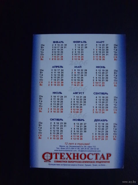 Календарик 2006 г. Техностар. 12 лет в туризме!