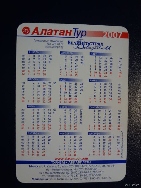 Календарик 2007 г. Алатан Тур. Белорусская амазонка.