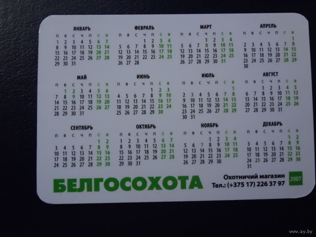 Календарик 2007 г. Белгосохота Олень.