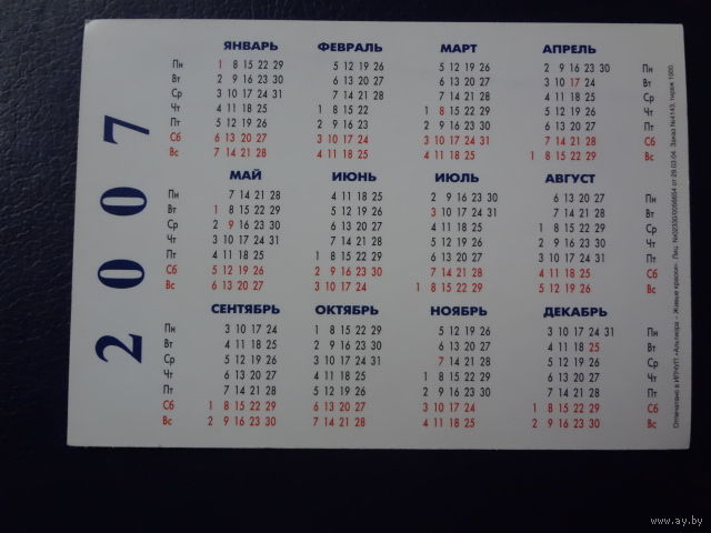 Календарик 2007 г. BELVNESHPROMSERVICE.