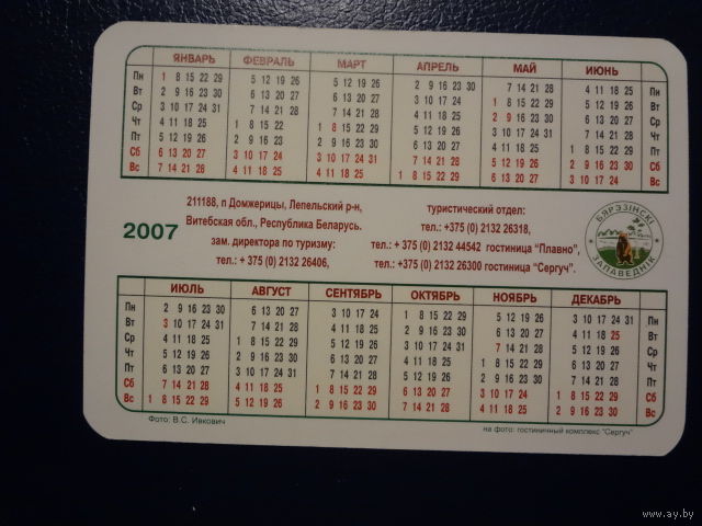 Календарик 2007 г. Березинский заповедник. Гостиница.