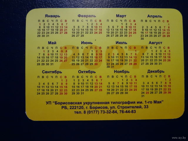 Календарик 2007 г. Борисовская типография. Наш труд для Вас.