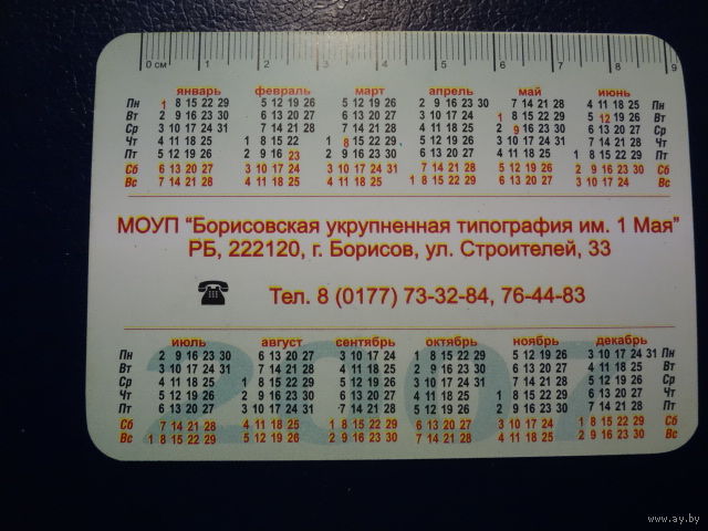 Календарик 2007 г. Борисовская укрупненная типография. Божья коровка.