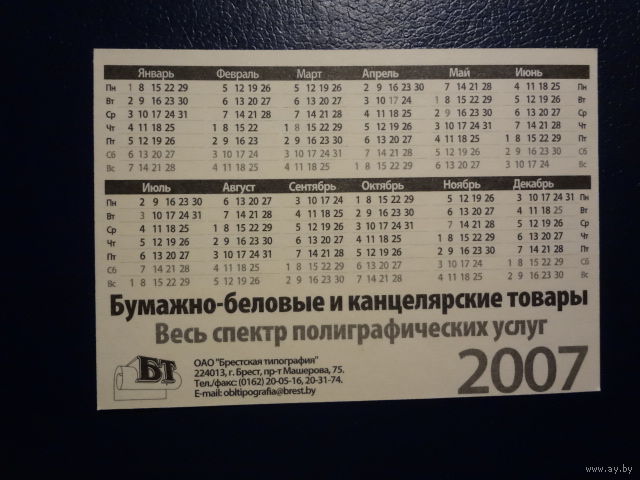 Календарик 2007 г. Брестская типография. Саванна.