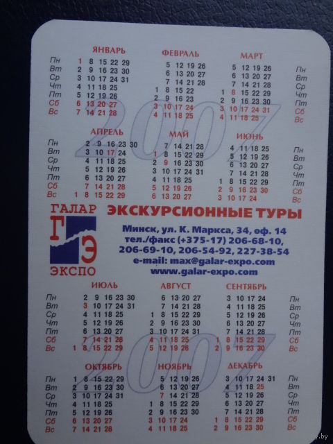 Календарик 2007 г. Галар-экспо.