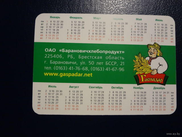 Календарик 2007 г. Гаспадар. (Барановичи).