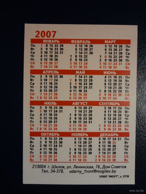 Календарик 2007 г. Газета Ударны фронт (Шклов).