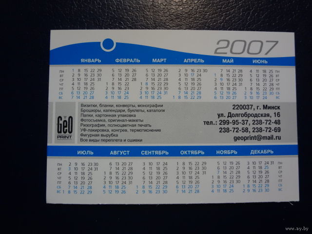 Календарик 2007 г. GeO print.