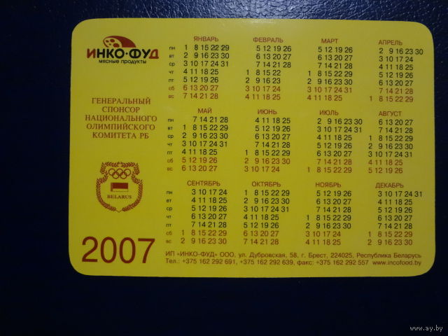 Календарик 2007 г. Инко-Фуд.