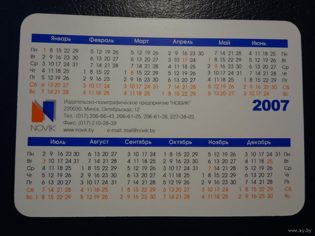 Календарик 2007 г. ИПП "Новик". Жизнь-это вечность в миниатюре.