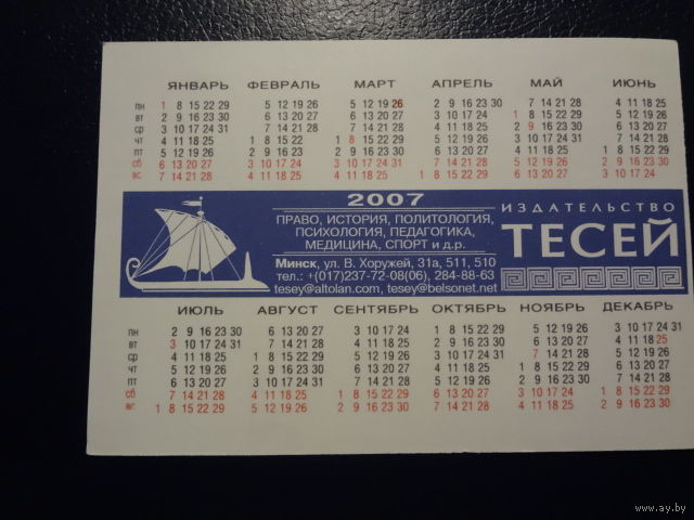 Календарик 2007 г. Издательство Тесей.