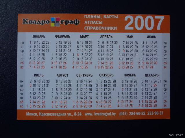 Календарик 2007 г. Квадрограф. Нет рекламы...