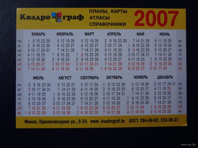 Календарик 2007 г. Квадрограф. С нами по Беларуси!