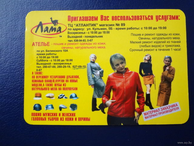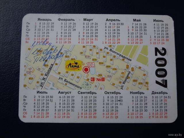 Календарик 2007 г. Лама. ТЦ Атлантик.