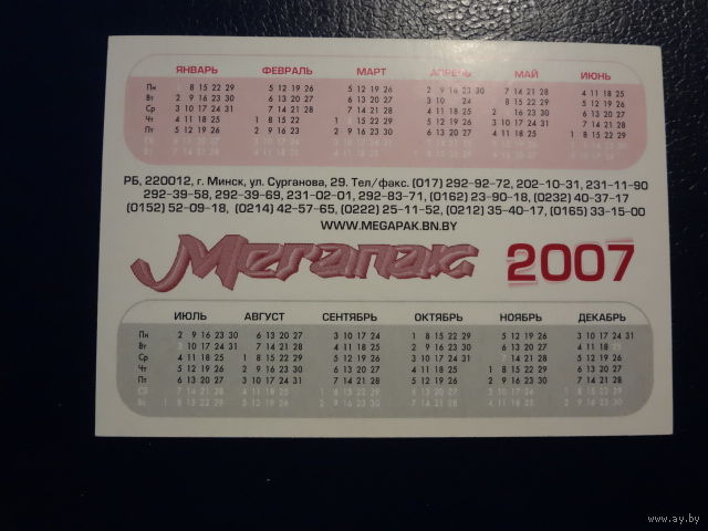 Календарик 2007 г. Мегапак. Пакеты и др.