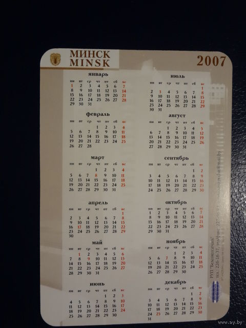 Календарик 2007 г. Минск.