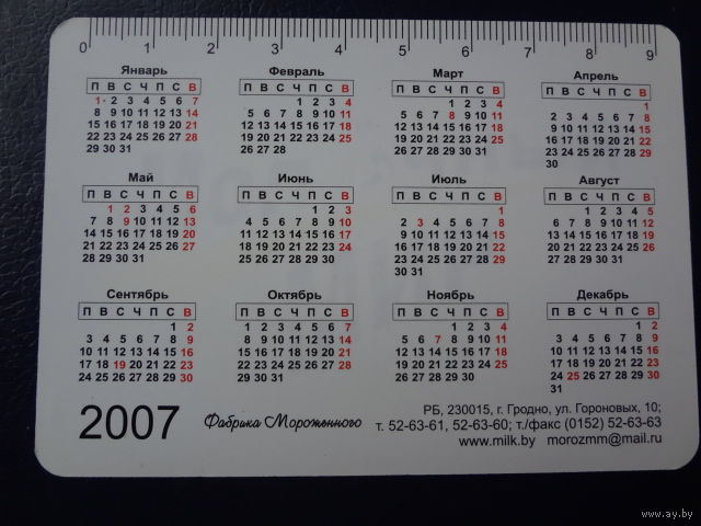 Календарик 2007 г. Молочный мир. Натуральное Мороженое.