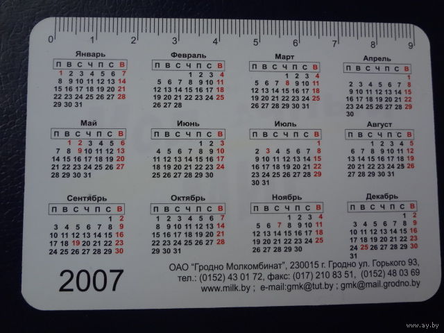 Календарик 2007 г. Молочный мир. Самый сочный сок!