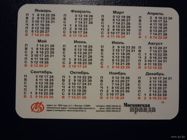 Календарик 2007 г. Московская правда. Вся жизнь столицы в одной газете.