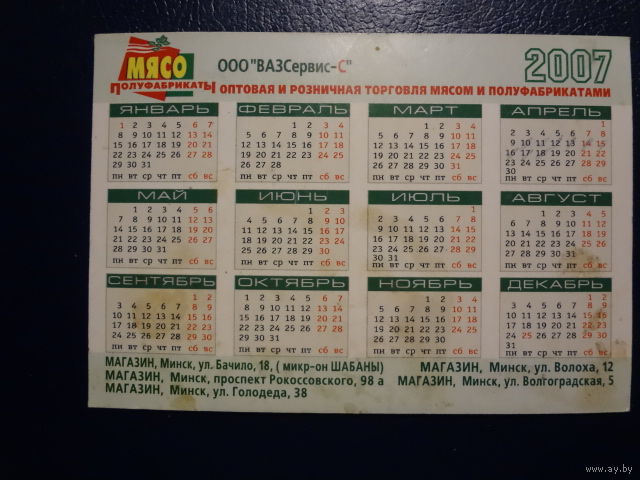 Календарик 2007 г. Мясополуфабрикаты. Приглашаем за покупками!