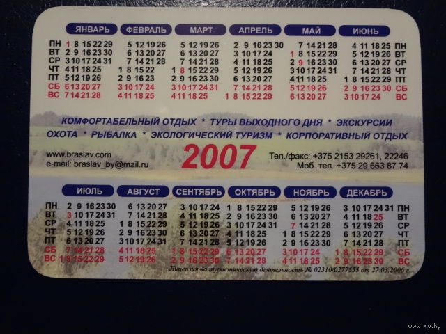 Календарик 2007 г. Национальный парк Браславские озера. (1).