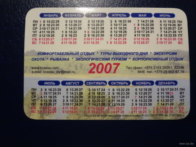 Календарик 2007 г. Национальный парк Браславские озера. (2).