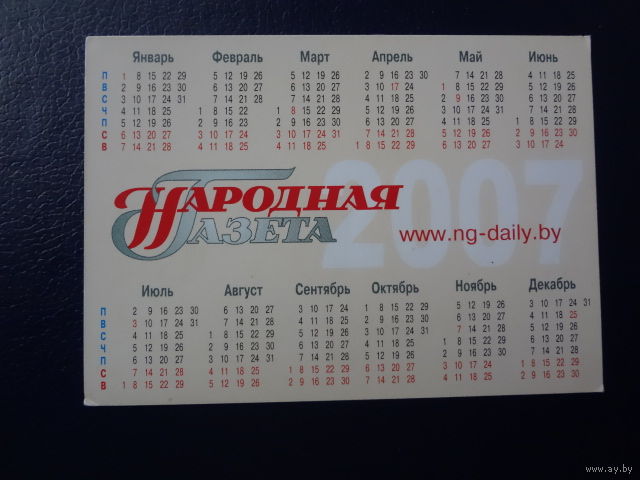 Календарик 2007 г. Народная Газета. Это наша газета!