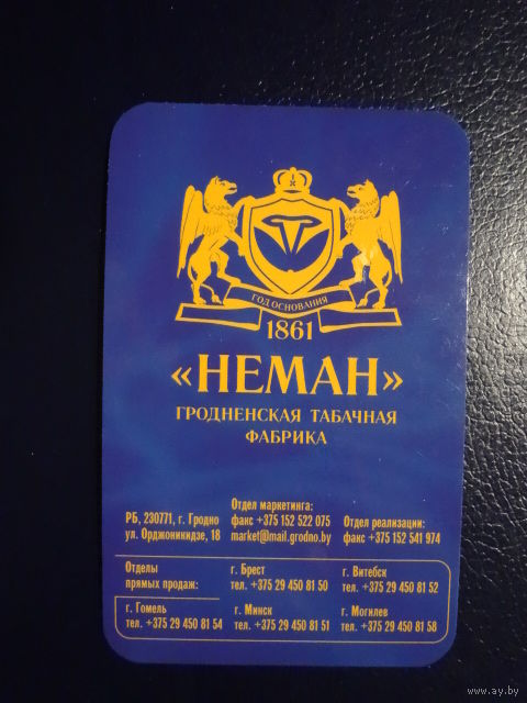 Календарик 2007 г. Неман. Гродненская табачная фабрика.