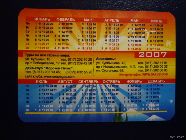 Календарик 2007 г. Sakub. Приятного путешествия!