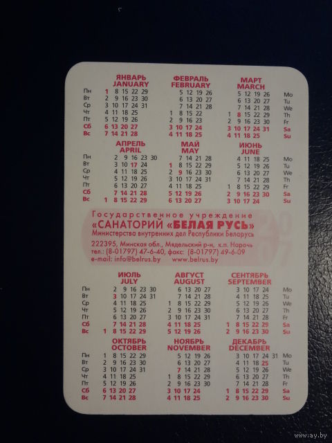 Календарик 2007 г. Санаторий Белая Русь (Мядельский р-он).