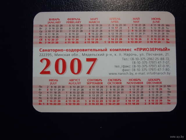 Календарик 2007 г. Санаторно-оздоровительный комплекс Приозерный.