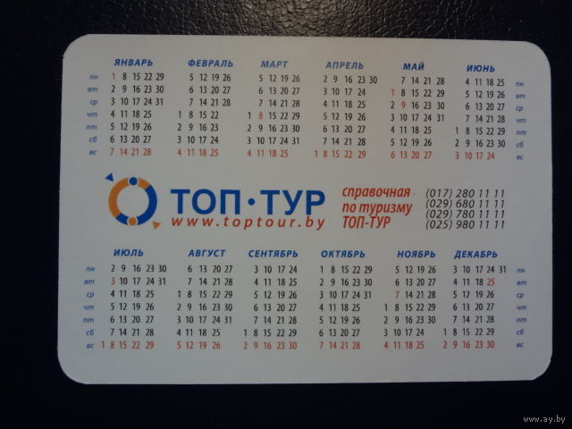 Календарик 2007 г. Топ-тур. Горы, лыжи, Топ-тур.