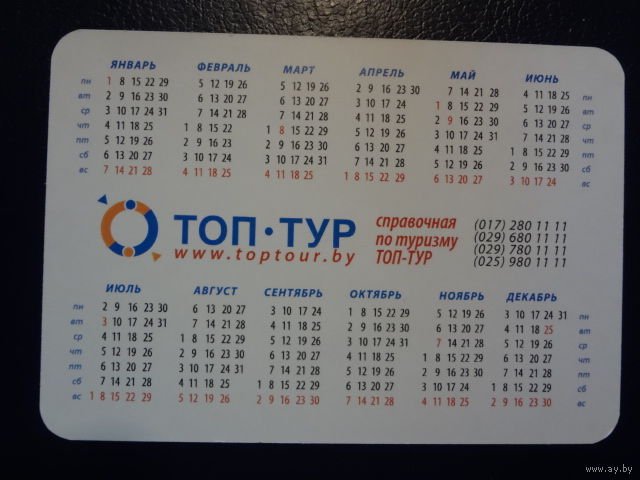 Календарик 2007 г. Топ-тур. Море, солнце, Топ-тур.
