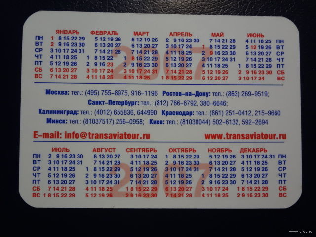 Календарик 2007 г. Трансавиатур - Краснодар.