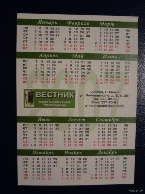 Календарик 2007 г. Учись читать! Вестник Высшего хозяйственного Суда РБ.
