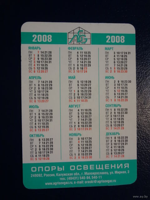 Календарик 2008 г. Агрисовгаз. Опоры освещения.