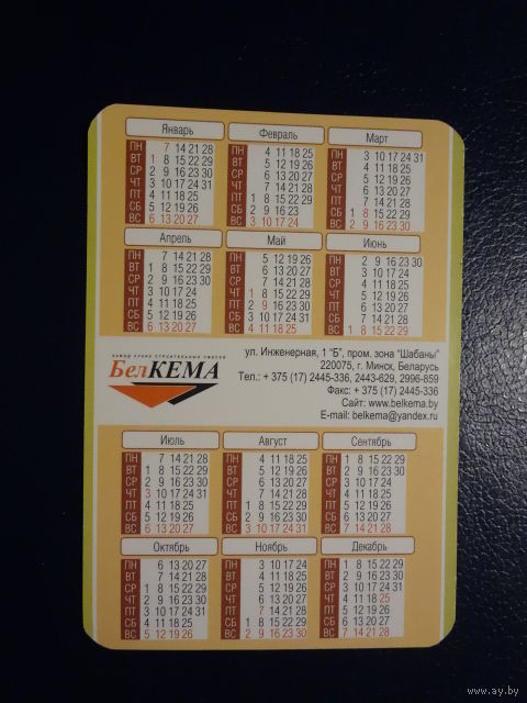 Календарик 2008 г. БелКЕМА.